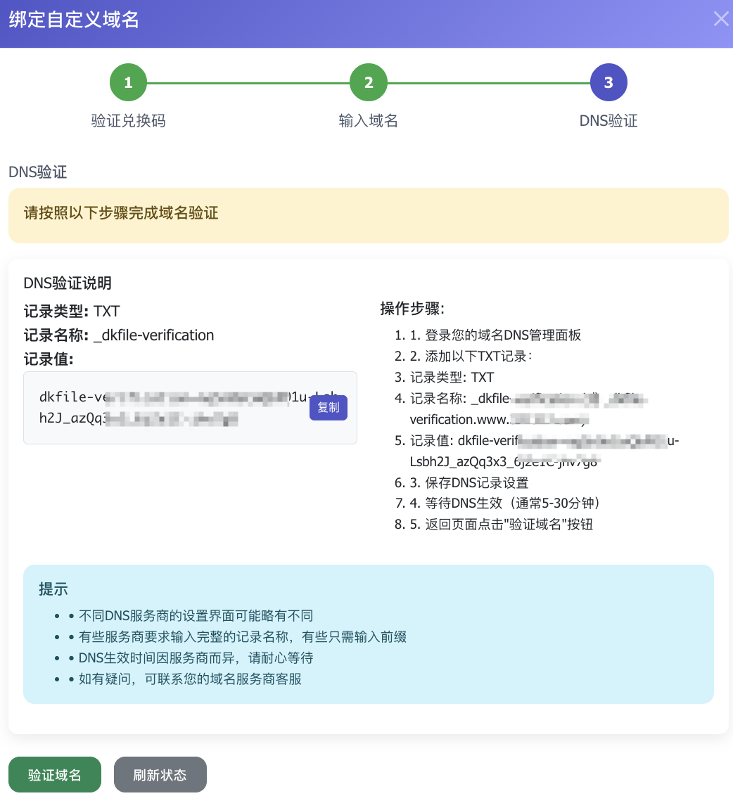 微信 957863300 找老徐,注明「申请DKFile」自定义域名 。